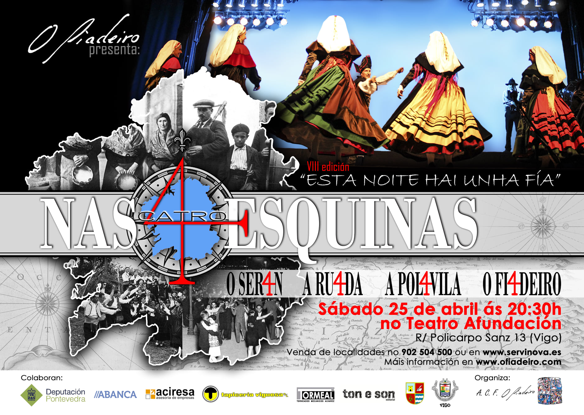 Cos billetes case esgotados, o Teatro García Barbón agarda a músicos e bailadores para vivir o 12 de marzo un día que dificilmente esquecerán. Varias xeracións subirán xuntas ao escenario. Inclusive, algúns artistas que tomarán parte non naceran cando O Fiadeiro botou a andar alá polo 1996. Unha mostra de que a escola e as novas xeracións veñen pisando forte coa mente posta en celebrar outros 25 anos e os que veñan.