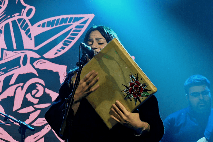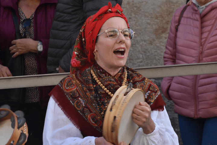 Pandeireteira da ACF O Fiadeiro durante unha actuación. / Foto: Rebelico Revista